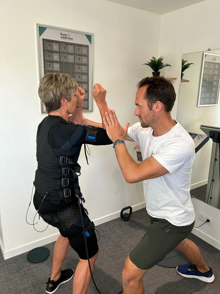 Dans nos centres Body addiction, nous proposons des séances d’électrostimulation corps entier à partir d’une technologie innovante créée en Allemagne par Miha Bodytec. Dans nos centres, les séances de coaching proposées sont pratiquées au maximum pour 2 abonnés simultanés, permettant ainsi une meilleure prise en charge et une sécurité optimale.